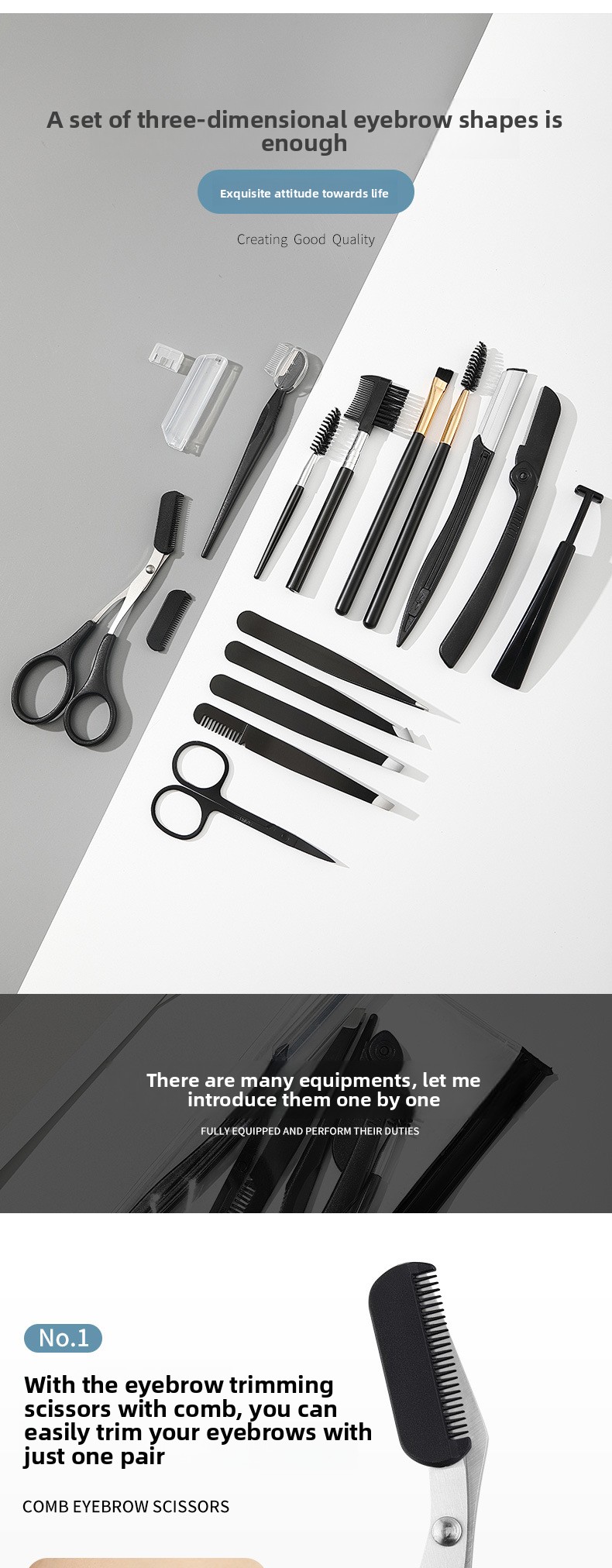 Complete Eyebrow Kit: Multiple tools including scissors, tweezers, and brushes for comprehensive grooming
